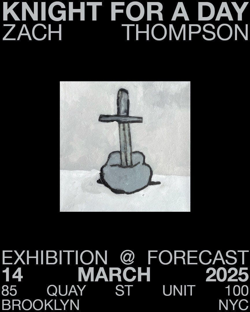 Knight for a Day was a fun experience authentic to the Midwest. The dull grey palette of the paintings was intentional and meant to mirror (and maybe honor) the dullness of most days during Michigan winter. The art has a slight flow that you can see the transition of, a journey in a sense, similar to that of a Knight’s. It has been fun to see Zach’s work continue to grow. When we had last spoken in person he had mentioned how badly he wanted to find a space in New York to put on a show, now 4 years later he is doing it!