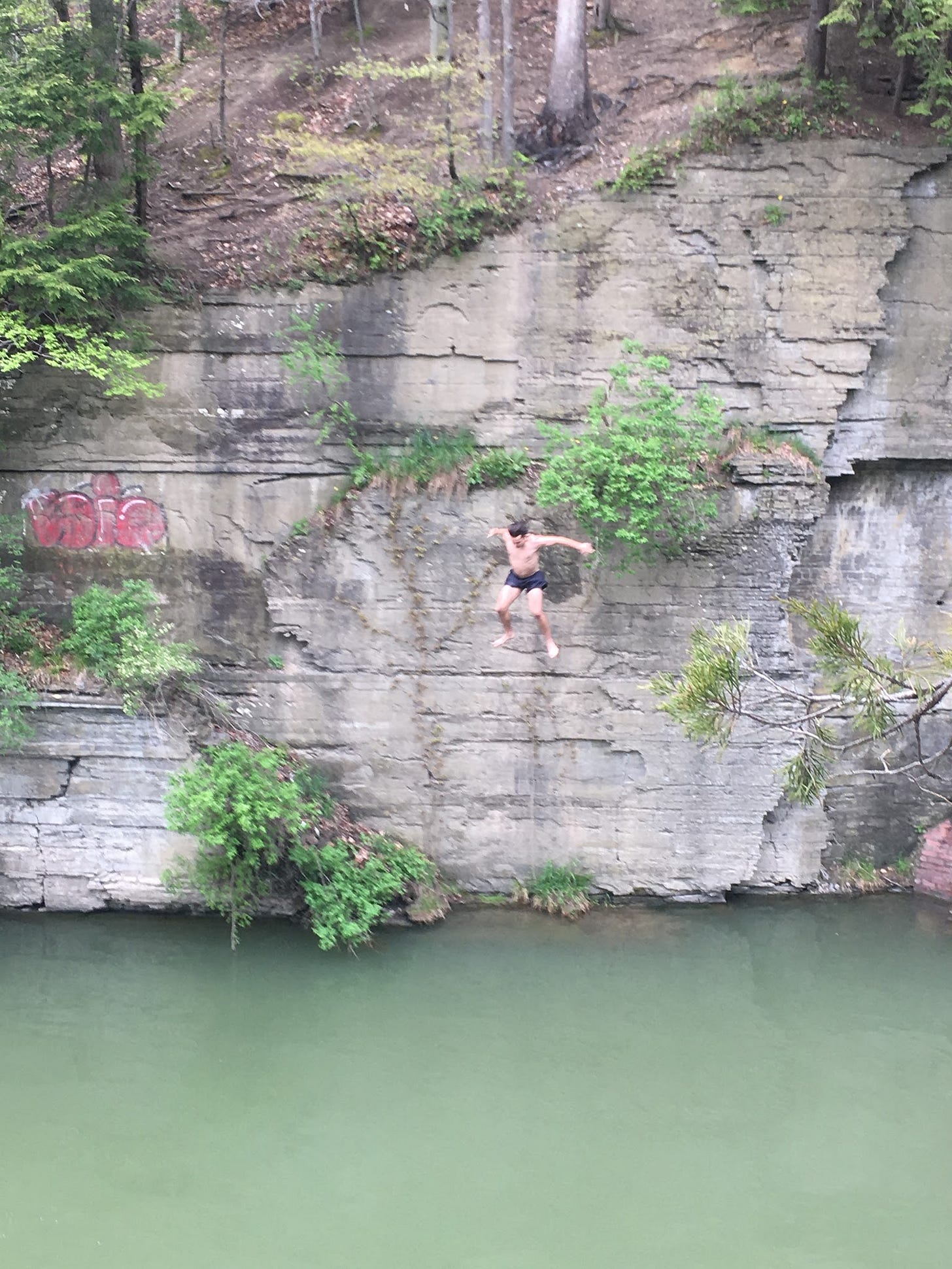 The most grounded I felt while at Cornell was in two places: the Friedman Wrestling Center, and 2nd Dam, a dammed-up reservoir along 6 Mile Creek, where locals gorge jumped at heights of 20, 40, and 60 feet. Somehow, no matter where I am, I instinctively find these sacred locations, where going airborne before landing in icy water can make any pain endured prior, during, or for several hours after, worth it.