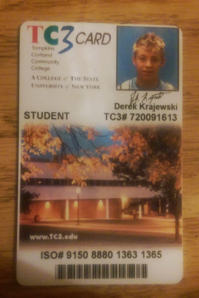 My TC3 Card—crazy how young I look—even in 2015, I don’t think that is what the average Freshman in college looked like.