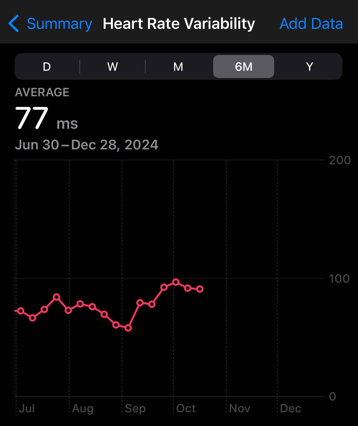 After a month of traveling around Europe, drinking endless amounts of espresso and wine, eating gelato and sweets, getting limited sleep, and contracting some sort of gnarly virus I watched my HRV and overall health take a steady decline as you can see from the chart above.