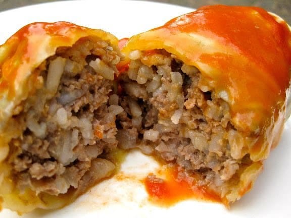Form the onion and mushroom mixture into balls, wrap in boiled cabbage leaves, cover in tomato soup, cover, and bake for 4 hours at 350.